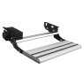 The structure is made from steel and aluminium and designed to grant higher stability in all conditions. The step is galvanised and painted with epoxy paint.The footboard is in anodised aluminium and is complete with anti-slip rubber. The motor is high powered and works on ball bearings and comes with a thermal breaker in case of excessive strain. Anti-shock clutch able to preserve the motor and the gearbox from violent hits while the step in motion. Comes complete with manual release system in case of emergency.