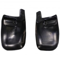 Pair of mudguards suitable for mounting behind the front wheels of Fiat Ducato. Made of sturdy but flexible rubber material and delivered as standard with painted steel brackets for installation to the front wheel arch of Ducato (after 2006). Weight: 330 gr each. Dimensions: 35cm x 22cm.