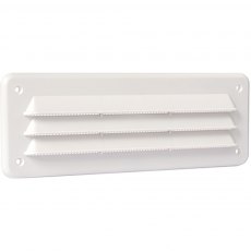 Plastic flush fitting air vent. Complete with mosquito nets. Vent (mm) 370 x 123, Cut out (mm) 335 x 95, 20mm Thick. 119cm2 airflow.